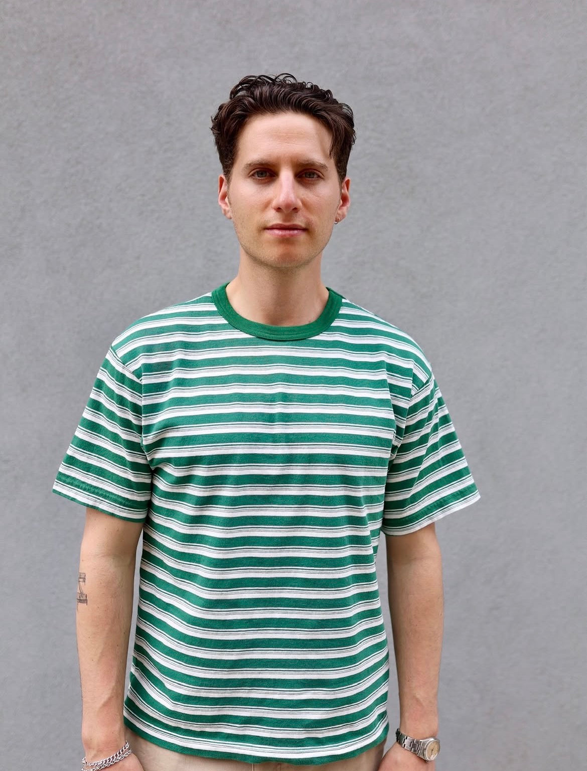 The MIJ Stripe Tee brings vintage charm to modern wardrobes. Made in Japan with meticulous attention to detail, this regular fit tee features classic horizontal stripes in a retro-inspired design. Constructed from 100% cotton this is a timeless piece that captures nostalgic style while remaining effortlessly wearable with any outfit.