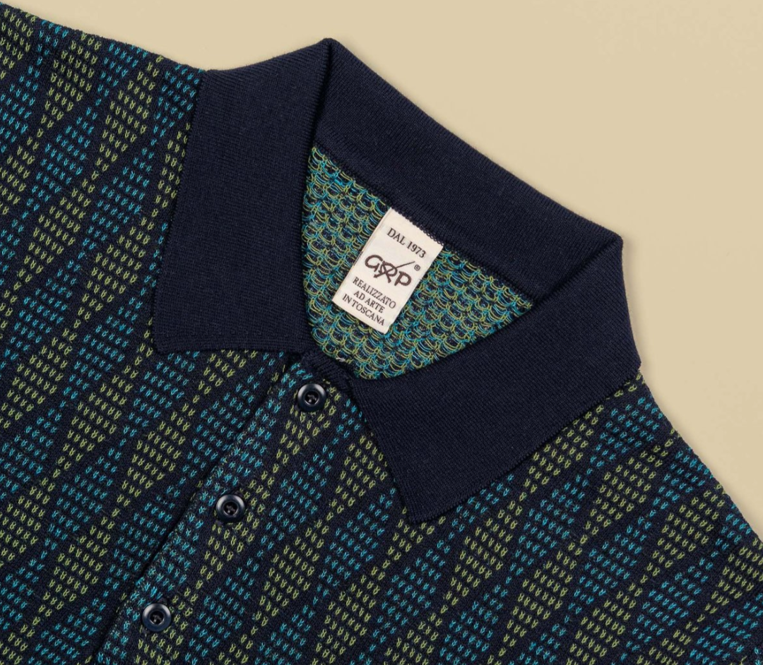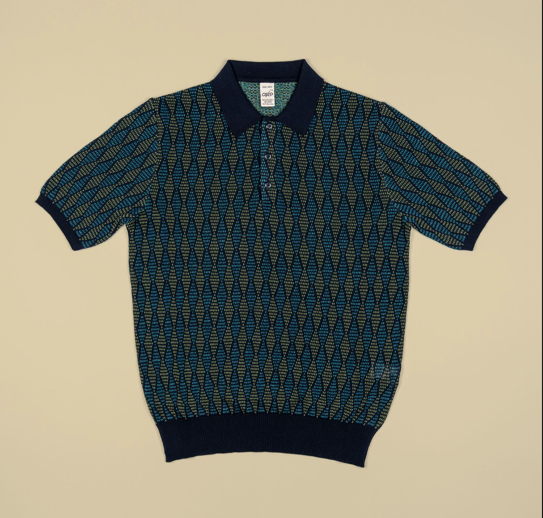 TEC J1 Cotton/Linen Short Sleeve Polo, Blue/Green