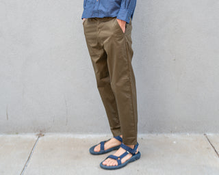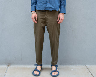 The Danver Pant is our laid back, easy fit. With a roomy thigh and carrot taper down to the ankle, this pant is effortless and easy to wear. We like wearing them slightly big and low on the hips. Fits like a subtle ankle crop for anyone under 6 feet and a more overt crop for anyone taller than 6 feet. Shop the Danver Long here for a more traditional length.
