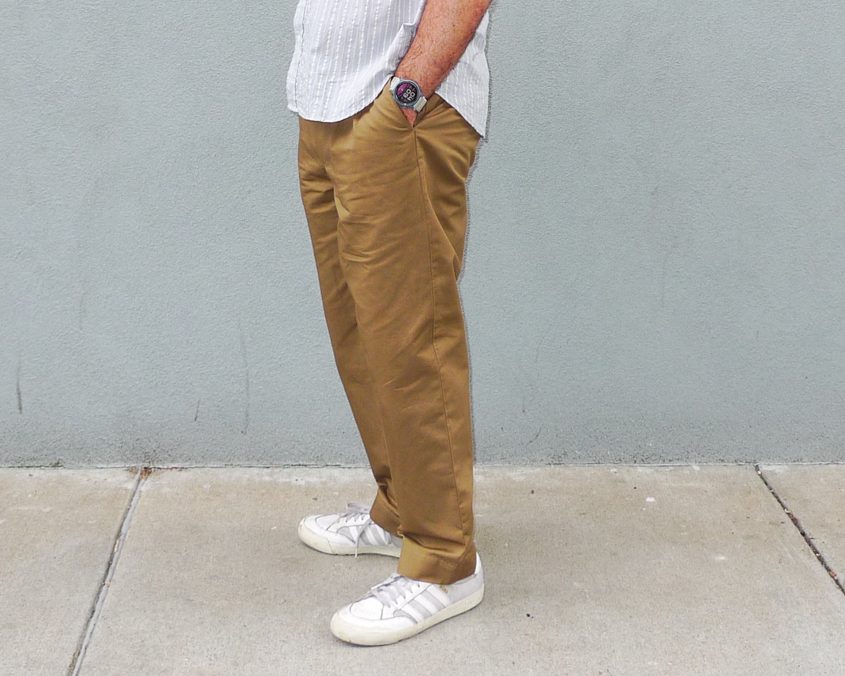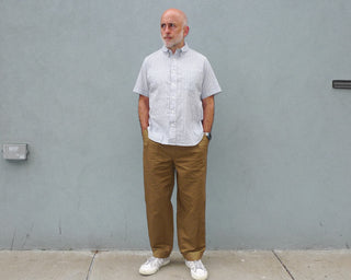 The Fund Pant is a pant for any day of the week that manages to look anything but everyday. The leg is roomy and wide, and the waistband is double pleated for ease of wear and to achieve a look that hints at retro silhouettes. The pant leg hits at your ankle if you are 5'10" and for taller frames, the length is a modern crop.