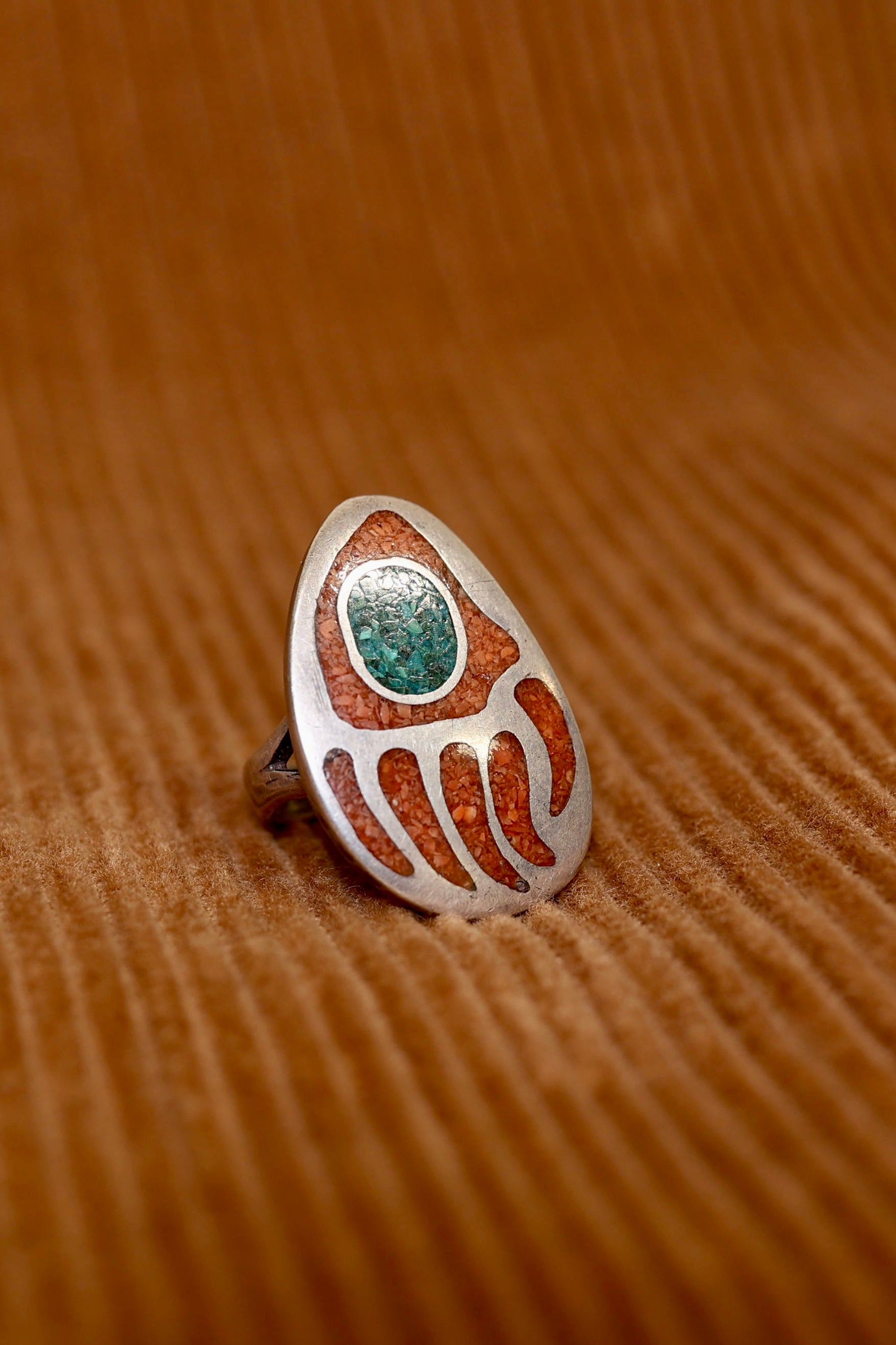 Vintage Sterling silver ring inlaid with turquoise and coral