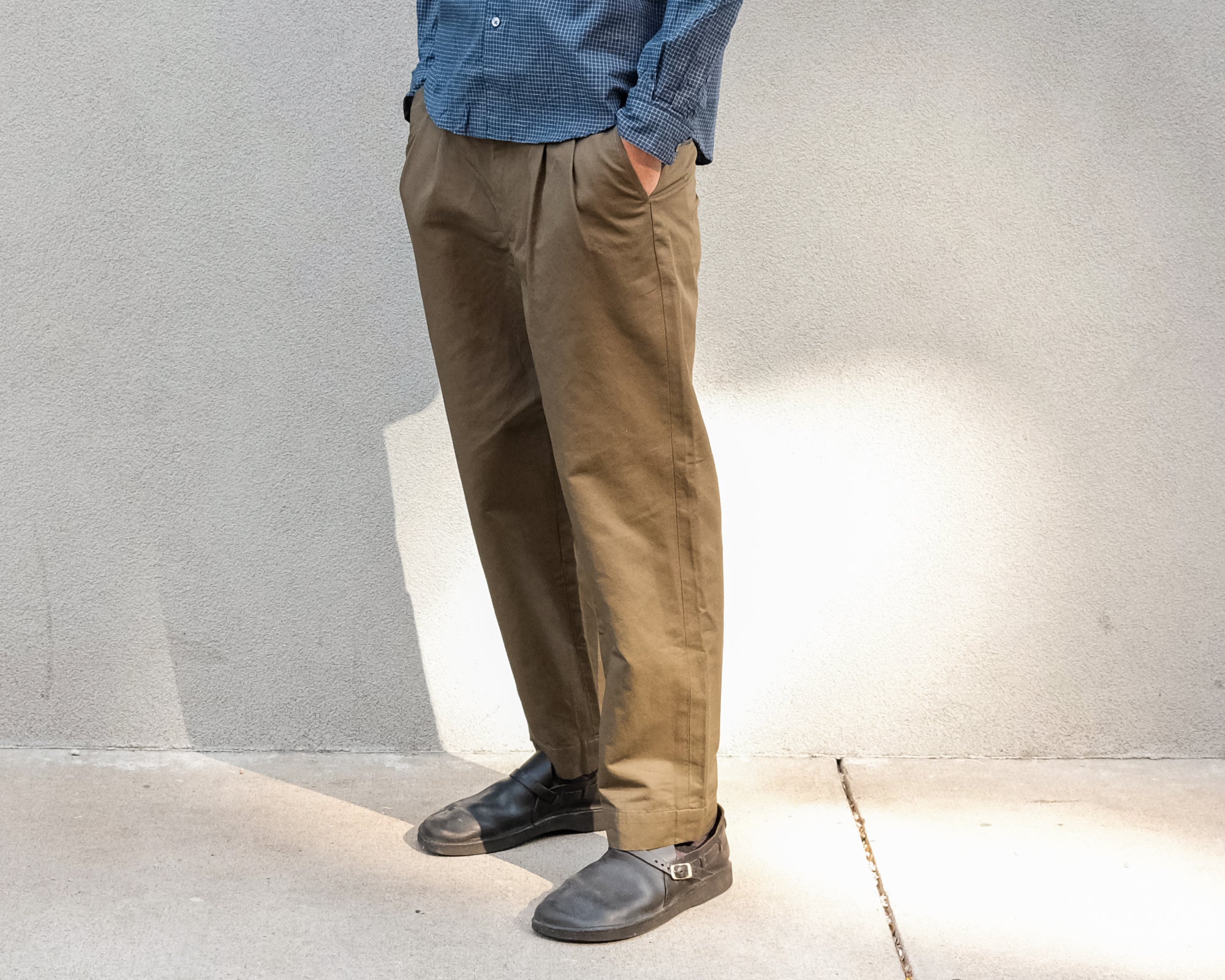 The Fund Pant is a pant for any day of the week that manages to look anything but everyday. The leg is roomy and wide, and the waistband is double pleated for ease of wear and to achieve a look that hints at retro silhouettes. The pant leg hits at your ankle if you are 5'10" and for taller frames, the length is a modern crop.