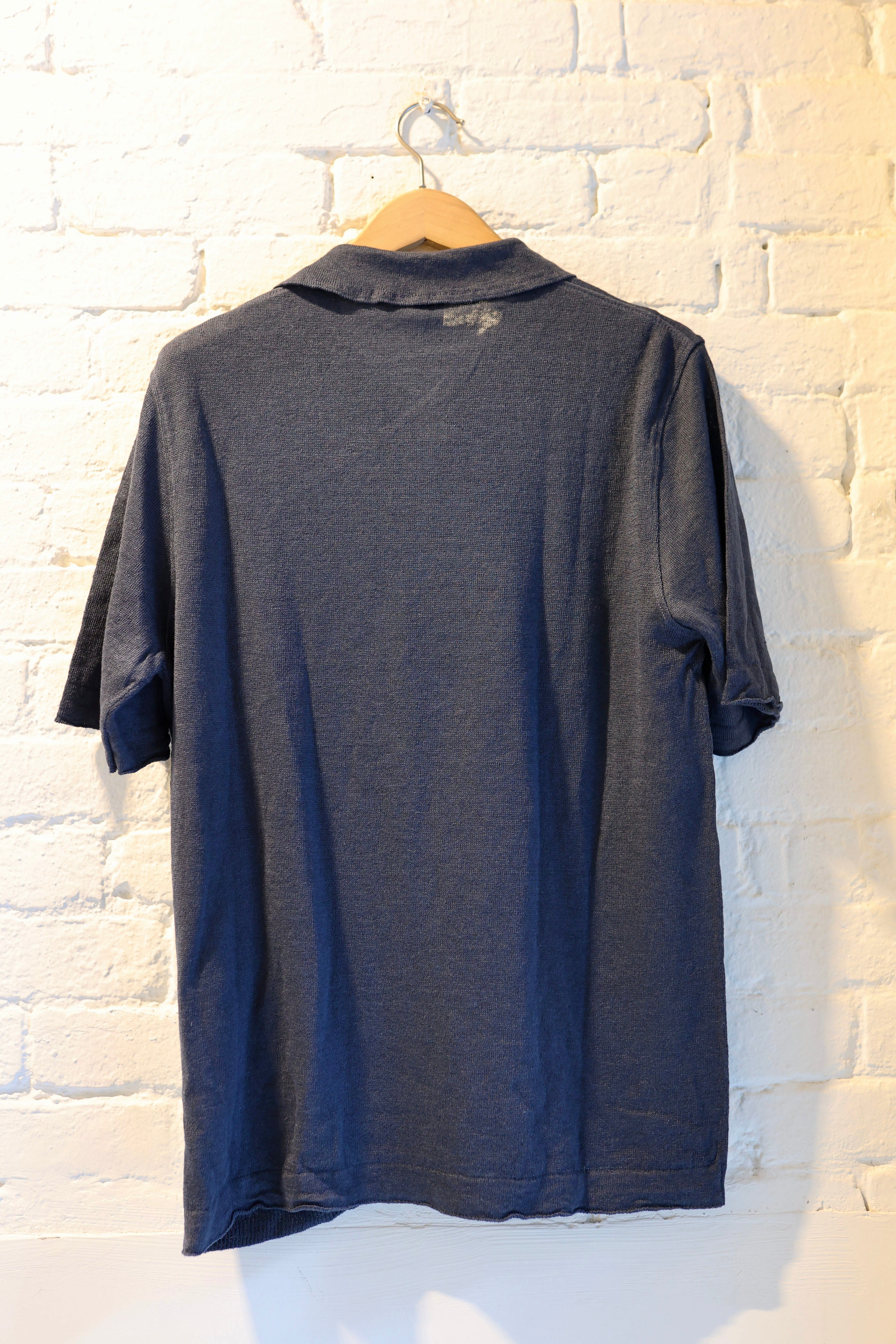 GRP PL 10 Linen 2 Button Short Sleeve Polo, Blue